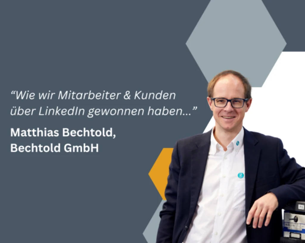 Beauftragt haben wir Bestform vor allem, um unsere Messe-Auftritte zu unterstützen und unsere Entscheidertermine vor Ort zu pushen. Das hat wunderbar funktioniert. Was uns aber noch mehr begeistert, sind die umfangreichen positiven “Nebeneffekte”. Wir nutzen LinkedIn mittlerweile intensiv und vorallem erfolgreich,